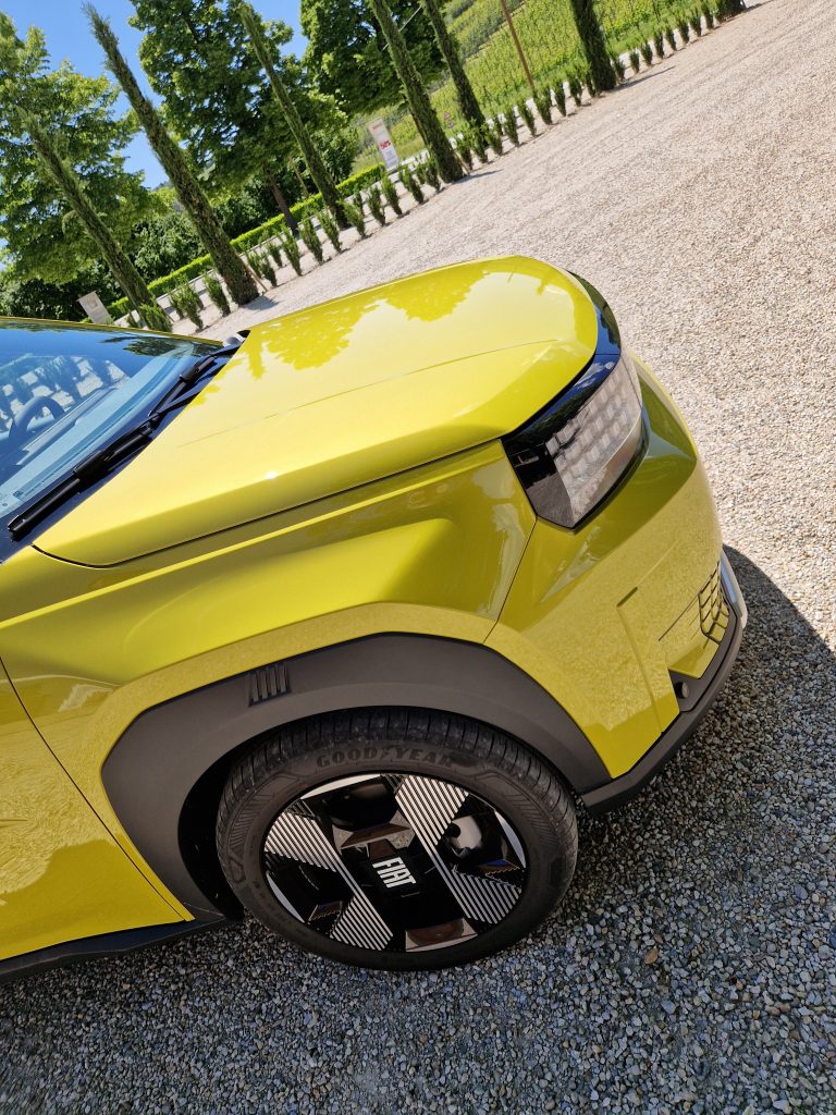 Fiat Grande Panda jest… kanciasty. Jest bardzo kanciasty. Niektórzy widzą w tym nadwoziu Hyundaia IONIQ 5, inni dopatrują się stylistyki popularnych Dacii, ale ta oryginalna kwadratura ma nawiązywać przede wszystkim do pierwszej generacji Pandy z 1979 roku. Kanciaste nadwozie ma w sobie coś z SUV-a, ale jest typowym małym miejskim autem. Małym nawet jak na segment B, bo nie ma nawet 4 m długości.