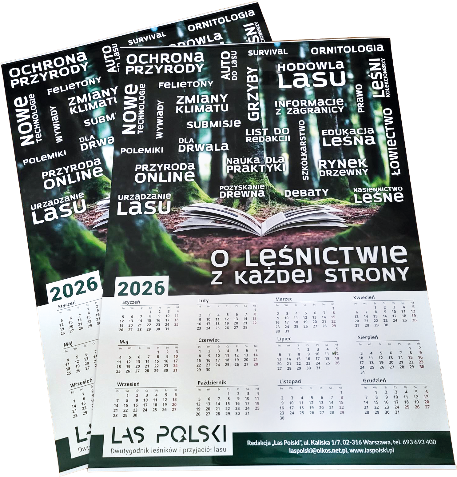 W roku 2026 „Las Polski” obchodzi 105 urodziny. Kolejny rok towarzyszymy Wam w codziennej pracy. Pożegnany niedawno rok 2025 był czasem wielu wyzwań dla leśników i całego leśnictwa. Mierzyliśmy się z problemami, których nie znali nasi poprzednicy, a jednocześnie coraz śmielej sięgaliśmy po rozwiązania technologiczne, o jakich jeszcze kilkanaście lat temu w leśnym świecie nawet nie dyskutowaliśmy. „Las Polski” od dekad trzyma się zasady, by o leśnictwie pisać z każdej strony. Takie też jest hasło przewodnie kalendarza na rok 2026, który mamy nadzieję, będzie – jak co roku – miłym towarzyszem codziennej pracy, a gościom odwiedzającym Wasze biura, choć w małym stopniu, przybliży, jak wieloaspektową dziedziną naszego życia jest uprawiany przez nas zawód.