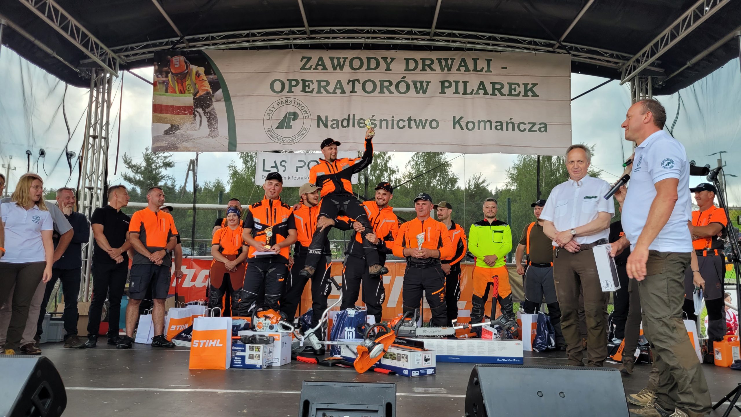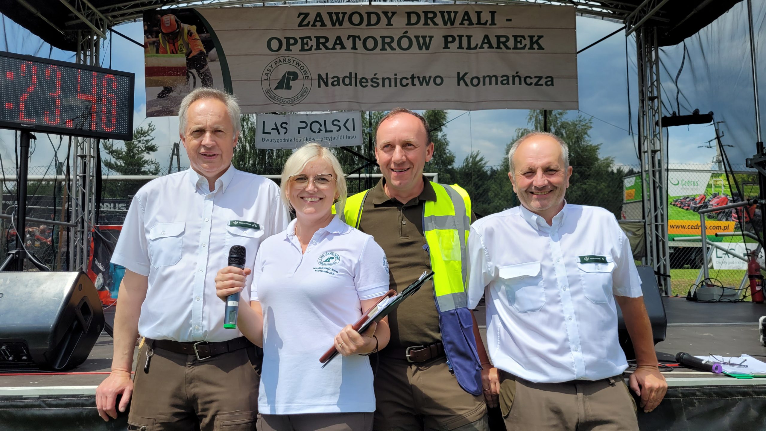 Miłą niespodzianką było wręczenie Kamilowi Szarmachowi, prezesowi Ogólnopolskiego Stowarzyszenia Drwali Lignator, i Bartłomiejowi Błażowskiemu z firmy Tech-Mot nagród w postaci „siekier”. Panowie byli zaskoczeni i przyjmowali wyjątkowe imienne siekiery z nieskrywaną radością. Nadleśnictwo Komańcza w ten sposób doceniło ich wkład we wspieranie Braci Leśnej oraz popularyzację zawodu drwala.