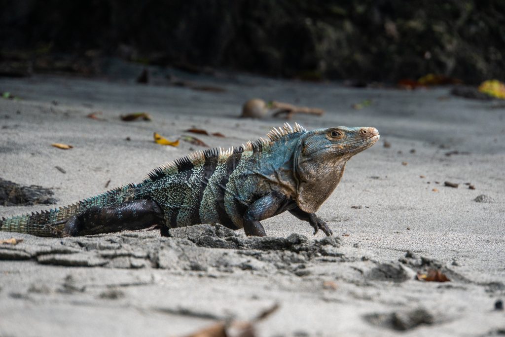 Po 45 minutowym spacerze i wielu napotkanych pająkach, żabach drzewnych i wężach docieram na plażę. Park słynie z czterech przepięknych plaż, w tym Playa Espadilla Sur i Playa Manuel Antonio – uważanych za jedne z najładniejszych w Ameryce Środkowej. W oceanie nagle dostrzegam błysk. To słońce odbija się w płetwach skaczących delfinów. To nie jest częsty widok. Podobno można też zobaczyć wieloryby. Zakładam maskę, dobrze zabezpieczam plecak, bo po plaży grasują szopy. Mają w zwyczaju podkradać przemycane przez turystów jedzenie. Kiedyś była to prawdziwa plaga. Teraz jest ich zdecydowanie mniej ze względu na ograniczenia wnoszenia jedzenia. Woda jest turkusowa i przezroczysta. Do tego niezliczone gatunki ryb w różnych rozmiarach i kolorach. Jak w filmie Gdzie jest Nemo albo i lepiej. W pewnym momencie poruszyło się dno. Myślałem, że to płaszczka, ale po chwili moim oczom ukazał się gigantyczny oliwkowy żółw morski. Istne National Geographic, tylko na żywo. Bardzo żałuję, że nie mam akurat ze sobą kamerki GoPro do podwodnego filmowania. Po wyjściu z wody czas na krótkie opalanie i medytację. Odpoczynek przerywa jednak poruszenie na plaży. To iguana majestatycznie kroczy po piasku. Bez strachu mija kolejne ręczniki, pozuje do zdjęć i po chwili znika w zaroślach.