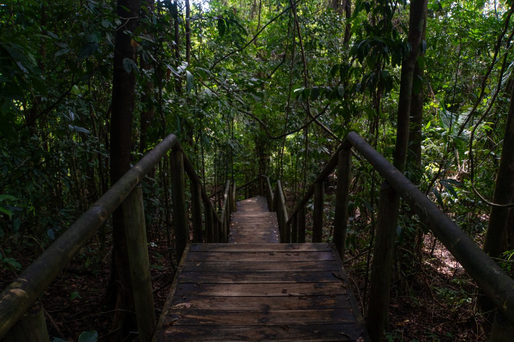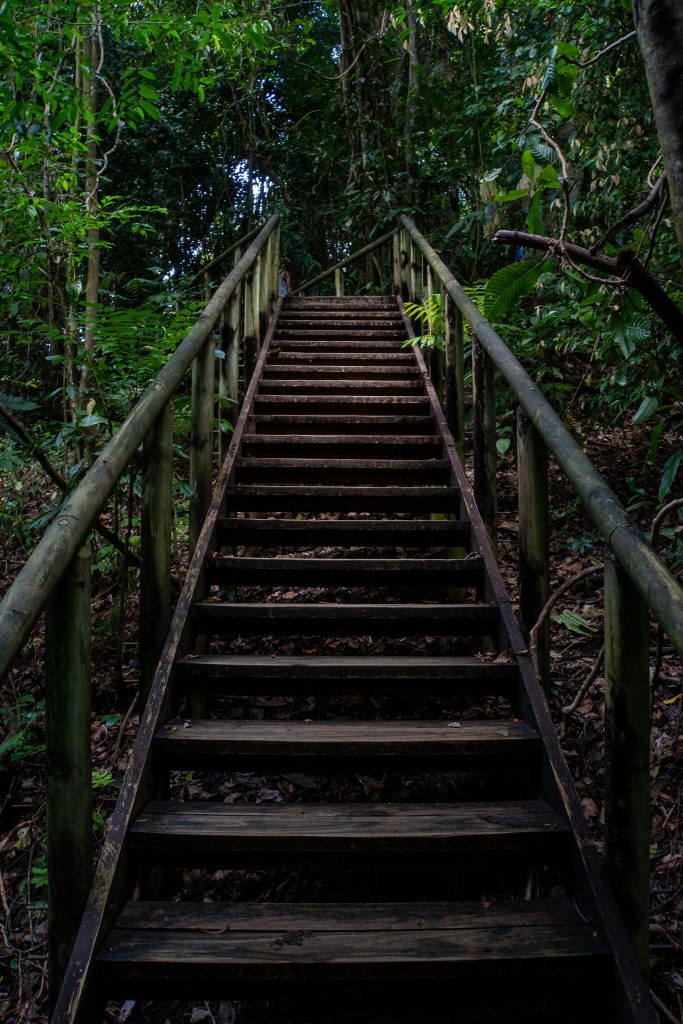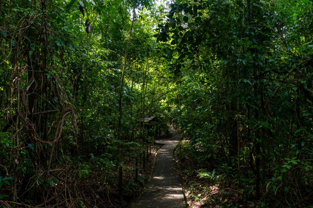 Na koniec zostawiłem sobie wisienkę na torcie. Trochę zaryzykowałem, bo odpuściłem na wejściu leniwce wysoko w koronach drzew. Bez lunety są nie do zobaczenia. Będąc drugi raz w parku, znam już miejsce, gdzie jest większa szansa na ominięcie tłumów i samodzielne wytropienie zwierzaków. Oczywiście nie ma gwarancji, ale podążam w wybrany fragment lasu znajdujący się na uboczu parku. Dobiega już 15. Na plaży słyszę głośne gwizdki strażników. Oznajmiają koniec kąpieli i nakazują opuszczanie plaży. Mam więc godzinę i jeden cel – leniwiec.