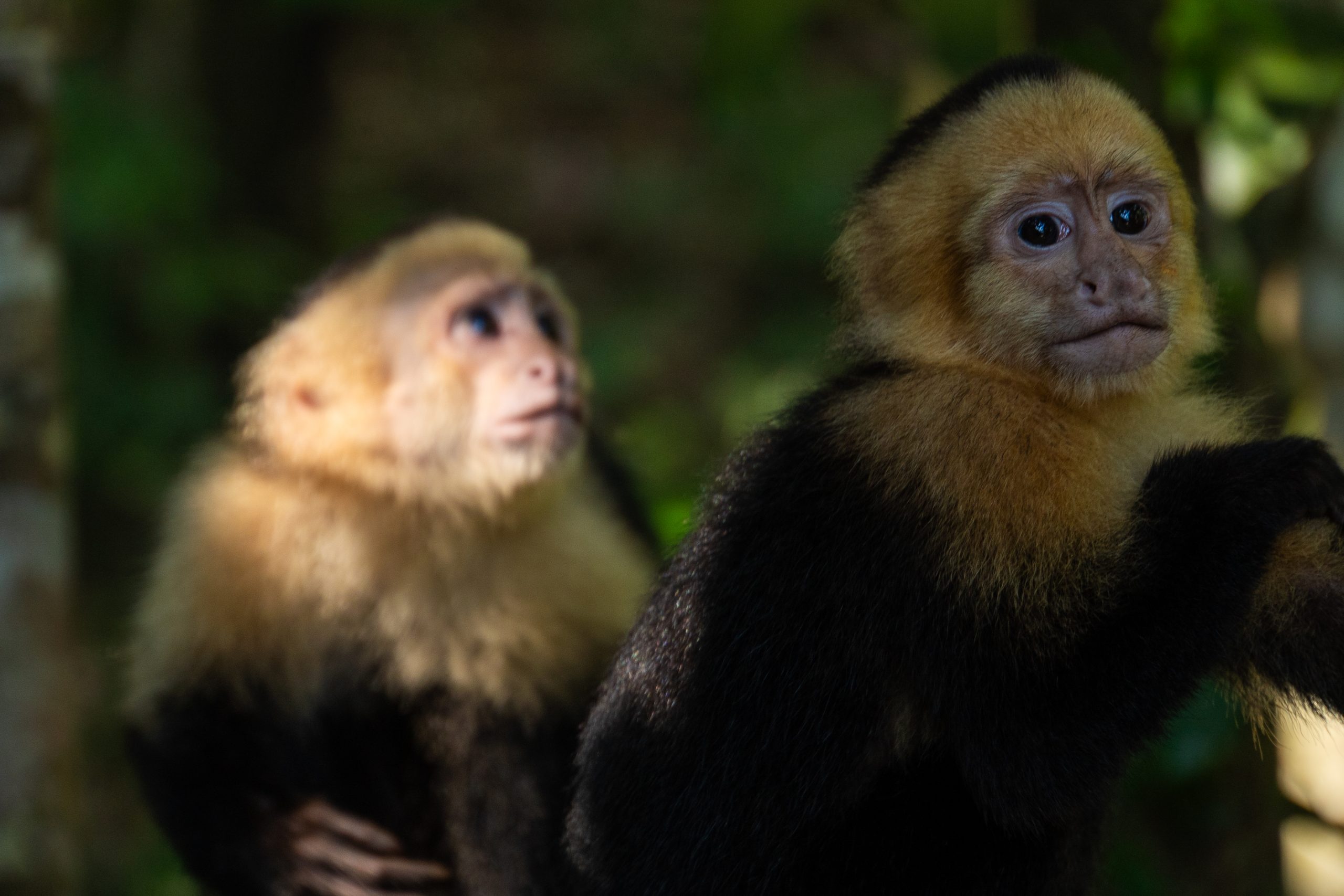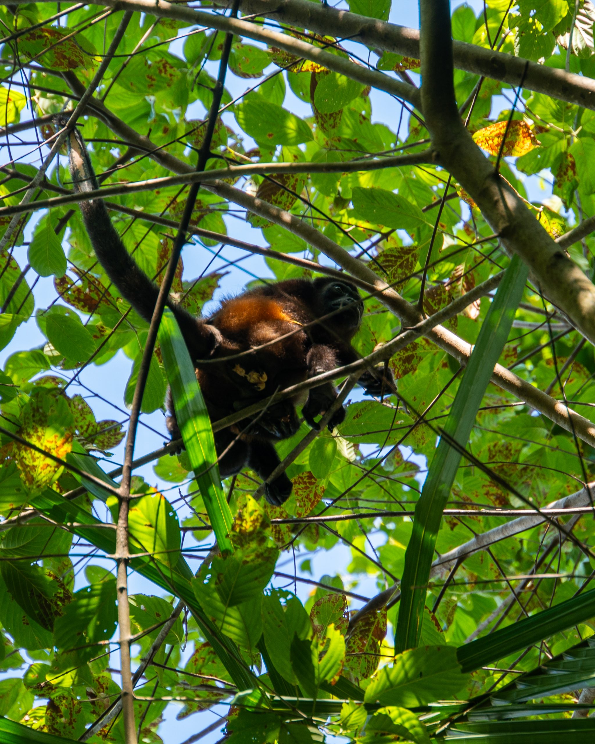 Ja ruszam dalej. W parku jest kilka ścieżek z punktami widokowymi na ocean. Biegną przez las deszczowy. Liczba gatunków drzew, mchów, pnączy i porostów przyprawia o zawrót głowy. Do najpopularniejszych należą: migdałecznik nadmorski (duże drzewo o rozłożystej koronie i szerokich liściach, często spotykane wzdłuż plaż), kapokowiec (ogromne, majestatyczne drzewo z charakterystycznym, rozszerzonym pniem u podstawy), Sapodilla (drzewo o twardym drewnie i słodkich owocach, kiedyś wykorzystywane do produkcji gumy do żucia) oraz wspomniane wcześniej Guarumo. W dużej liczbie występują też niezliczone gatunki palm oraz drzewa figowe. Pnie drzew porastają epifity i bromelie, zapewniając wilgoć i schronienie dla wielu organizmów. Uwielbiam las i zawsze w takich momentach wracam myślami do czasów studenckich oraz ćwiczeń terenowych w Rogowie i Białowieży albo do wspomnień z pracy w radomskich lasach. Z zadumy wyrywa mnie jednak głośne wycie. Znam ten odgłos. To wyjce. Nie tak łatwo je zobaczyć. Biegnę szybko, szykując aparat. Pomimo dużej liczby turystów jestem w tym miejscu zupełnie sam. Wpatruję się w korony drzew i po chwili moim oczom ukazują się dwa wyjce. Są wysoko, więc nawet mój obiektyw 200 mm ledwie daje radę. Robię zdjęcia, ale w takich momentach wolę nacieszyć się widokiem na żywo niż przez wizjer aparatu. Wrażenia wizualne i efekty dźwiękowe łączą się w fantastycznym spektaklu natury.