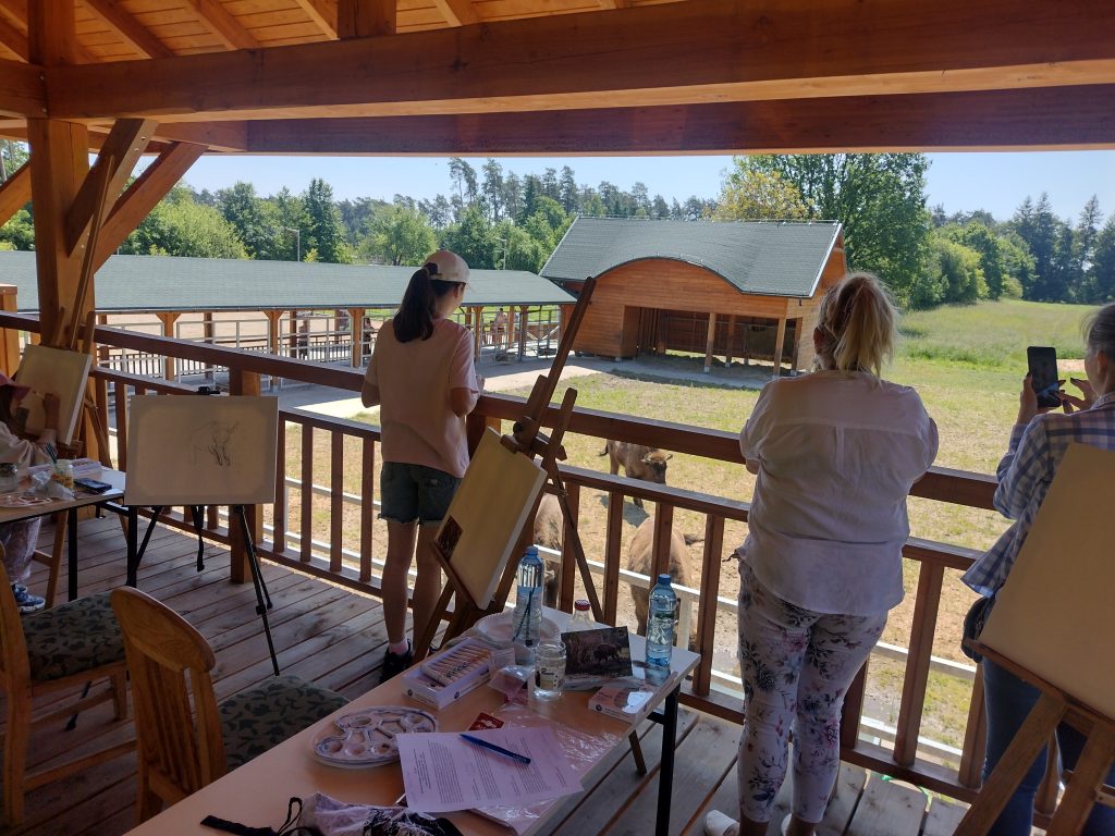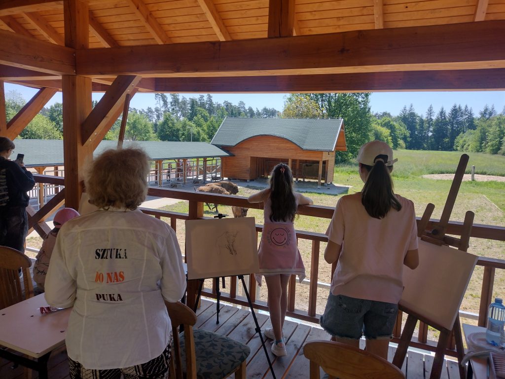 Nie zabrakło też spotkania z leśną sztuką – pod okiem artystów rzeźbiarzy wydobywano piękno ukryte w drewnie, a dzieci i młodzież, korzystając ze wskazówek artystki malarki, utrwalały zagrodę i jej mieszkańców na płótnie.