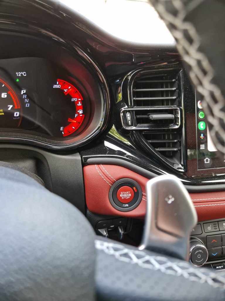 Upływ czasu bardzo widać za to we wnętrzu. Nie ma tutaj wielkiego dotykowego ekranu, panel sterowania klimatyzacją jest z fizycznymi przyciskami, a materiały, chociaż niezłej jakości, wciąż są o to przysłowiowe „oczko” niżej niż u europejskiej konkurencji. Dla niektórych mogą to być wady, ale ci, którzy kochają Hellcata za układ napędowy, nawet nie zwrócą na to uwagi. Bo tutaj najważniejszy jest silnik!