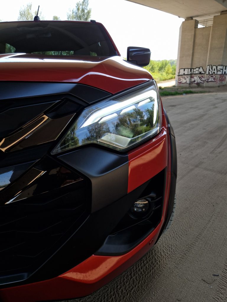 Stylistyka odświeżonego niedawno w ramach faceliftingu D-Maxa łączy w sobie prostotę z… No właśnie. To przede wszystkim prostota, ale ubrana w kilka oryginalnych stylistycznych zabiegów, takich jak ogromny grill w kontrastowym kolorze i dynamicznie narysowane reflektory z ledami do jazdy dziennej. Są też estetyczne nakładki na nadkola i czarne progi ułatwiające wsiadanie. A tył? Cóż, nawet najwybitniejsi styliści mają przy pikapach związane ręce bo co można wymyślić przy kwadratowej pace?